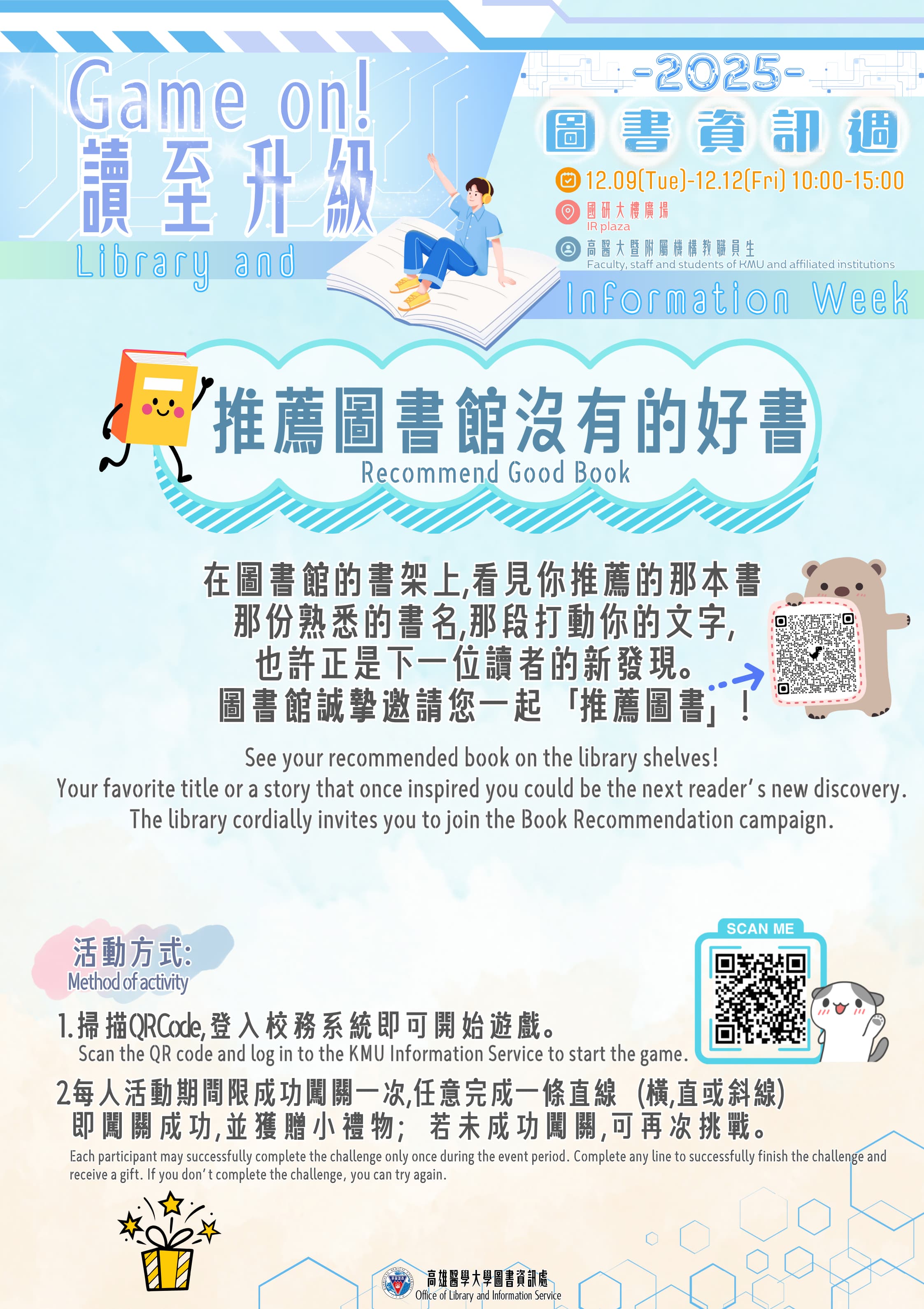 Scan the QR code and log in to the KMU Information Service to start the game.