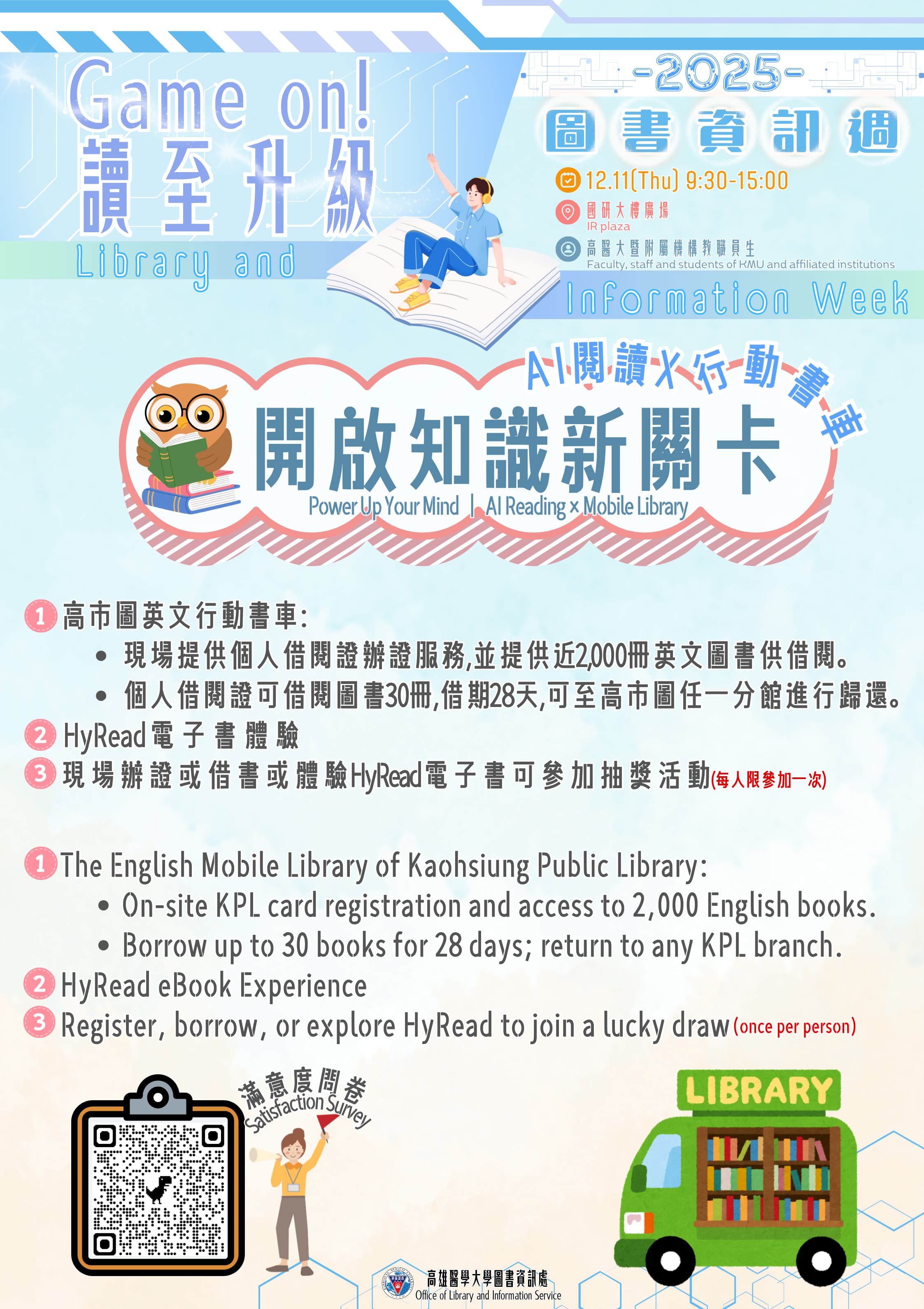 - 現場提供個人借閱證辦證服務,並提供近2,000冊英文圖書供借閱。 On-site KPL card registration and access to 2,000 English books.